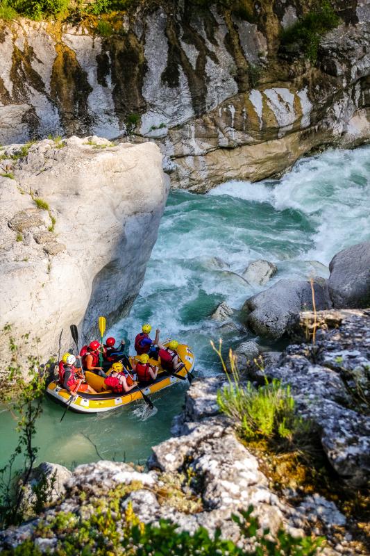 - Pour naviguer en RAFTING au départ de Castellane, il est nécessaire que les barrages EDF soient ouverts. Dans le cas contraire, nous profitons du débit plus faible de la rivière pour entrer, à la nage, dans le Grand Canyon du Verdon. C'est la fameuse Rando Aqua.